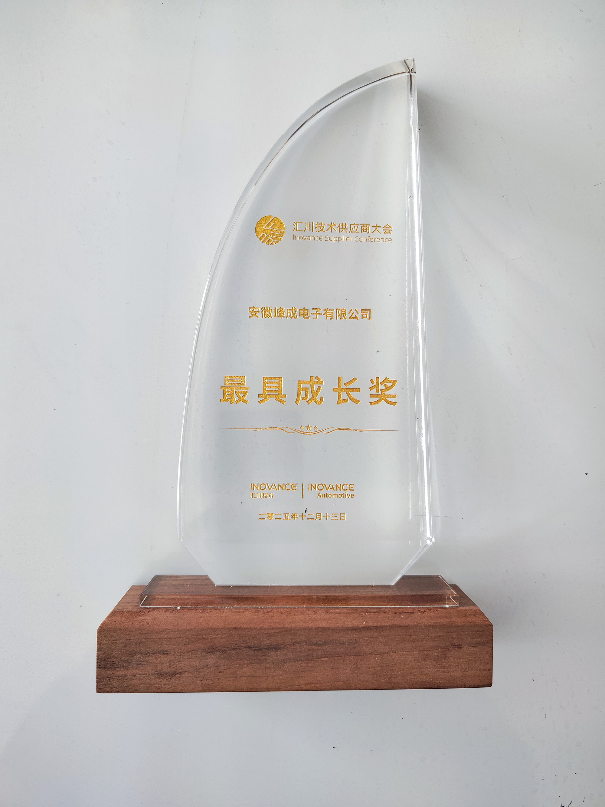 匯川聯(lián)合動(dòng)力是專注新能源汽車電驅(qū)與電源系統(tǒng)研發(fā)的國內(nèi)龍頭企業(yè)之一?!白罹叱砷L獎(jiǎng)”旨在表彰在合作過程中展現(xiàn)出強(qiáng)勁發(fā)展勢頭、持續(xù)創(chuàng)新能力與卓越服務(wù)水平的合作伙伴。此次獲獎(jiǎng),不僅是匯川技術(shù)對(duì)雙方過往合作成果的肯定,更是對(duì)峰成公司綜合實(shí)力與成長潛力的高度認(rèn)可。面向未來,峰成公司將繼續(xù)堅(jiān)持創(chuàng)新驅(qū)動(dòng),加強(qiáng)新品研發(fā),提升品質(zhì)服務(wù),推進(jìn)雙方互利合作再上新臺(tái)階,助力新能源汽車電子產(chǎn)業(yè)的高質(zhì)量發(fā)展。